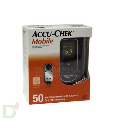 Глюкометр Акку-Чек Мобайл (Accu-Chek Mobile) – в глюкометр сразу вставляется инновационная сменная кассета с 50 тестами на непрерывной ленте. Больше нет необходимости носить отдельную баночку, использовать тест-полоски и их утилизировать, можно легко, быстро и удобно произвести измерение в дороге, в школе, на работе и дома.