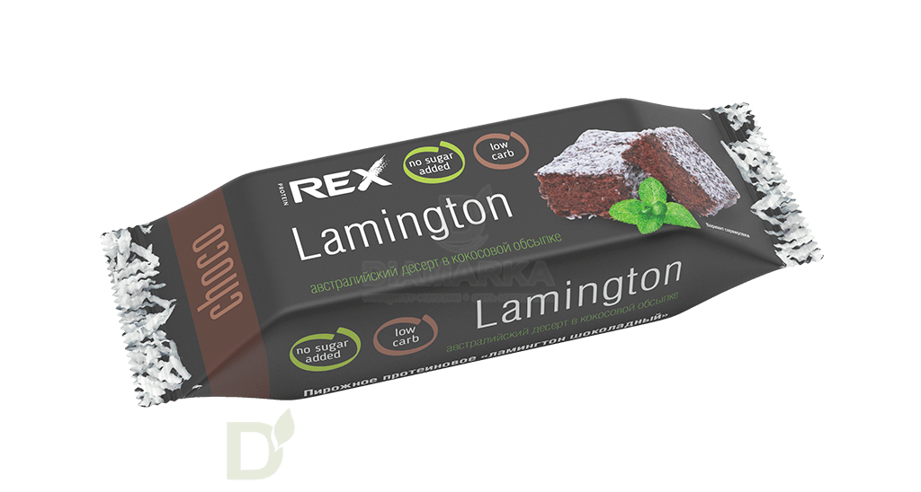 <h2>Вкуснейшее пирожное без сахара, лишних калорий и углеводов</h2> Все еще думаете, что диета - это скучно, пресно и невкусно? Только не с вкусняшками от Protein Rex. Protein Rex - настоящая находка для тех, кто соблюдает диету, не ест сахар и сахаросодержащие продукты, болеет диабетом, занимается спортом и просто соблюдает здоровый образ жизни.<br> <br> <h3>Диета без срывов - это реальность!</h3> Особенности и преимущества пирожных Protein Rex:<br> <ul> <li>в составе нет сахара, вместо него - низкокалорийный подсластитель нового поколения изомальт</li> <li> десерт обогащен пребиотиком</li> <li> пониженное содержание калорий и минимум углеводов</li> <li> натуральный и приятный вкус любимого десерта</li> </ul> Масса нетто: 50 грамм<br> <h3>Состав пирожного Ламингтон шоколадный</h3> протеиновый комплекс (белок яичный, концентрат молочного белка); стружка кокосовая; подсластители: изомальт, эритрит; масло кокосовое; изомальтоолигосахариды (пребиотик); масло растительное; вода питьевая; какао-порошок; мука пшеничная; желток яичный; мука миндальная; загустители: полидекстроза, крахмал модифицированный, каррагинан; молоко сухое обезжиренное; влагоудерживающий агент глицерин; эмульгатор лецитин соевый; разрыхлитель гидрокарбонат натрия (сода пищевая); соль; ароматизаторы натуральные; консервант сорбат калия.<br> <h4>Пищевая и энергетическая ценность на пирожное</h4> белки - 6,5<br> жиры - 13<br> углеводы - 8<br> пищевые волокна - 6<br> 190 ккал
