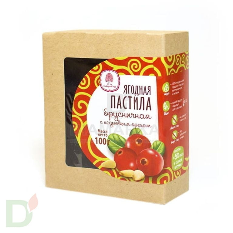 Пастила Брусничная с кедровым орехом Сибирский Кедр, 100г