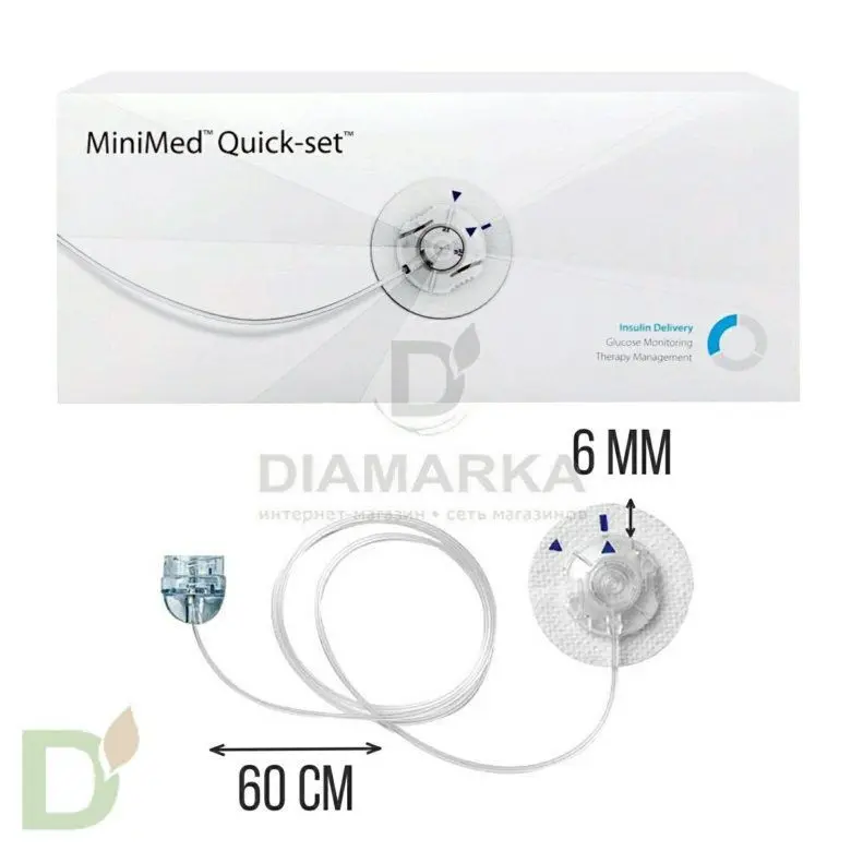 Квик-Сет – это одноразовое устройство, предназначенное для подкожного введения инсулина с целью компенсации сахарного диабета. Подходит для использования со всеми имеющимися моделями помп Медтроник (ММТ-715/720G/722/740G/754/780G/640G).