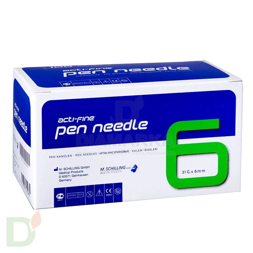 Иглы Акти-файн / Acti-fine 31G для шприц-ручек, длина 6 мм, 100 шт.