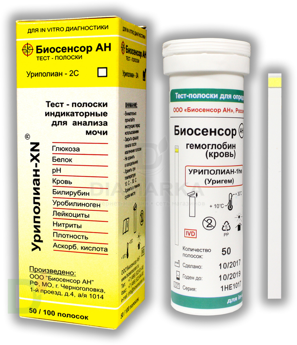 Тест-полоски визуальные Уриполиан-XN 5А №50 для определения биохимических параметров в моче